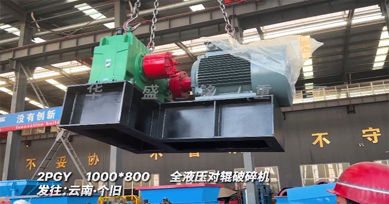 視頻展示的是華盛銘重工生產的1米×800全液壓對輥破碎機,配備兩臺45千瓦電機和江蘇國貿硬齒面減速機,專為云南個舊客戶的鐵礦石細碎作業定制。設備性能優良,穩定可靠,助力杜總生意興隆,共創輝煌。